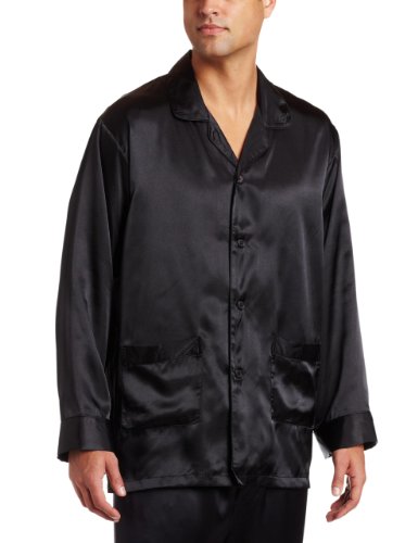 Intimo Men's Poly Charmeuse 2 Pocket Button Front Pajama Top, Black, Medium Reviews
