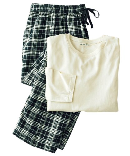 Woolrich - These pajamas include a flannel elastic-waist pants with drawcord adjustment are comfy enough for restful snoozing and also pocket-equipped for convenient puttering around the house. Crewneck top of soft brushed cotton knit has ribbed collar. 100% cotton. Imported. Machine wash.